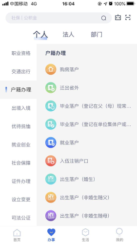 注:查看业务办理进度或补全材料可进入我的办事中查看。