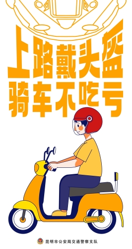 为不断增强电动自行车骑乘人员佩戴安全头盔的自觉性,提升文明守法、安全骑行的意识,昆明公安交警一组精心制作的海报提醒你“头”等大事,务必重视!