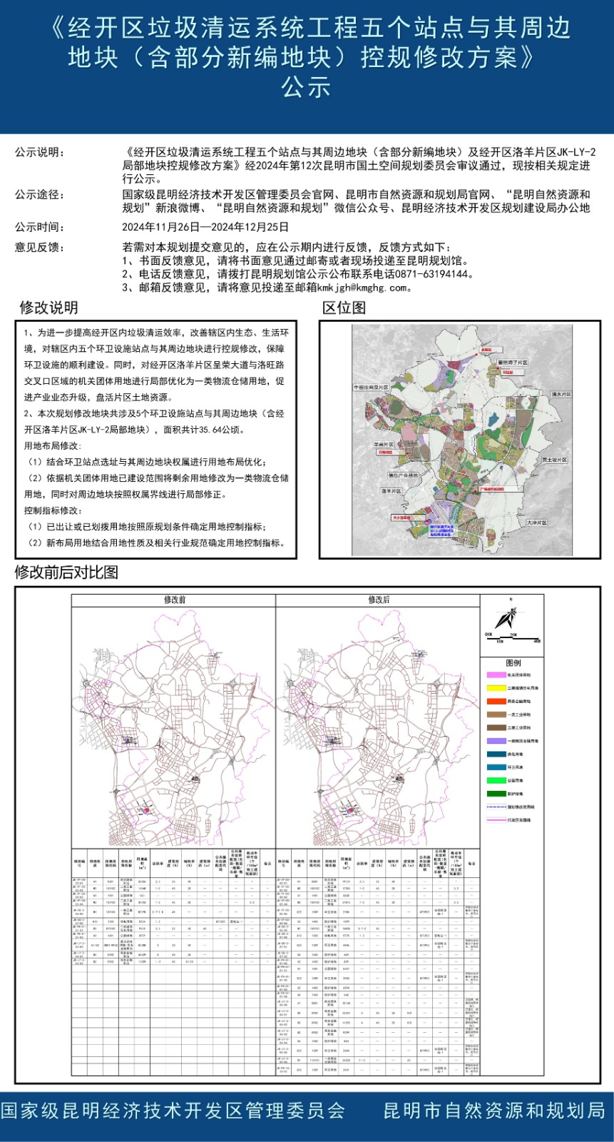 《经开区垃圾清运系统工程五个站点与其周边地块(含部分新编地块)控规修改方案》公示