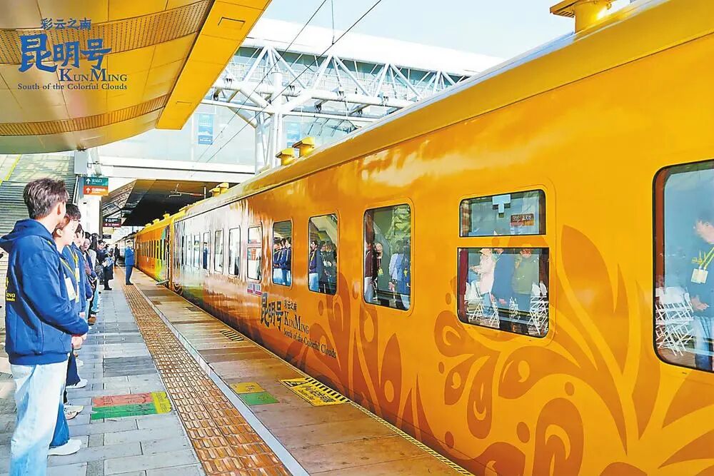 首列 “彩云之南·昆明号”跨境旅游列车发车后,12月24日,“彩云之南·昆明号”云南环线列车也将首发,载着游客游览红河、保山、临沧、普洱、西双版纳等省内热门目的地。