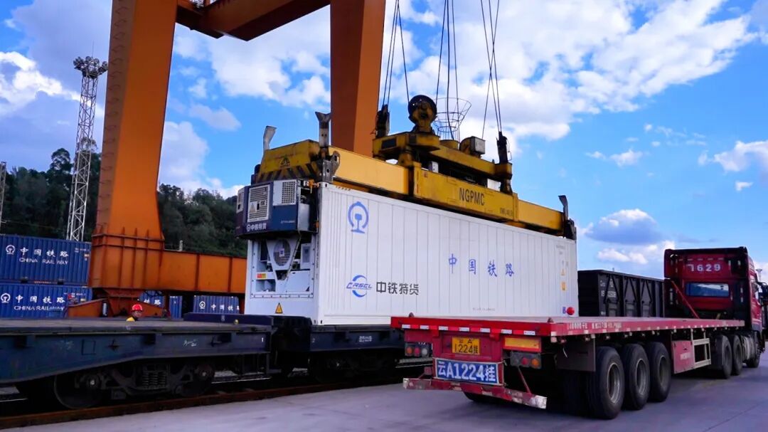 满载泰国榴莲的货运列车到达昆明安宁。资料图