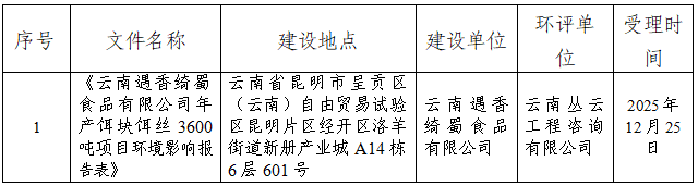 昆明市生态环境局关于2025年12月25日建设项目环境影响评价文件受理情况的公示