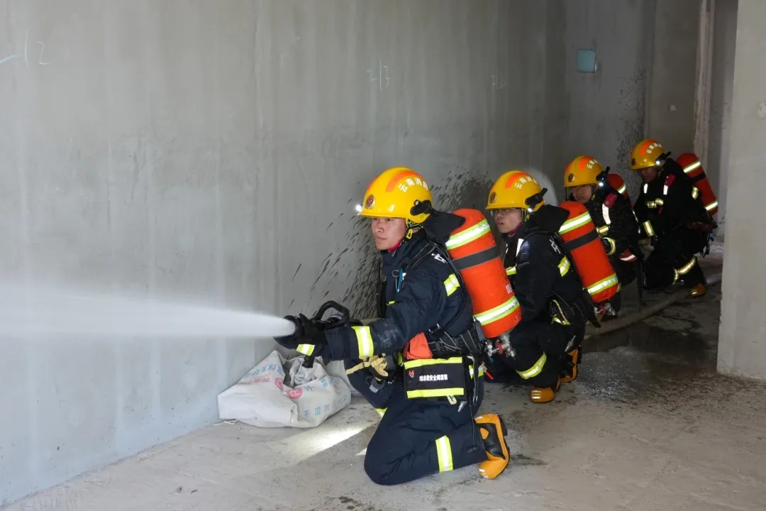 消防救援力量到场后,现场指挥员立即对各参战力量进行任务部署。阿拉小型站负责现场指挥部搭建,便于各方力量进行现场态势分析及处置决策部署;首到的石坝小型站负责对现场进行警戒疏散;玉缘路站救援人员兵分两路,1组携带快反包乘坐电梯至15层向16层内攻,另1组垂直铺设水带至6层,后弯延铺设至着火层下层;春漫大道站利用3辆25吨重型水罐消防车对前方力量进行不间断供水作业,同时派出紧急救助组协助玉缘路站进行人员搜救和疏散任务;锦宁街站救援人员则携带足量水带沿楼梯弯延铺设至着火层下层,同时利用登高平台车管网出水向16层发起进攻。整个救援过程紧张有序,各小组配合默契,成功将火势扑灭,“被困人员”被安全救出。