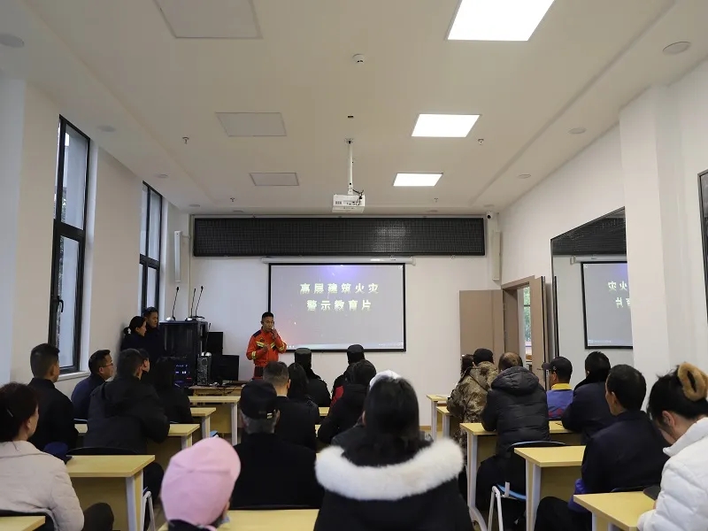 培训环节,消防救援人员结合典型火灾案例,详细讲解高层建筑火灾的危害、起火原因、逃生技巧及消防设施器材的正确使用方法;演练环节则模拟火灾初期场景,重点开展疏散引导、初期火灾扑救等实操训练。