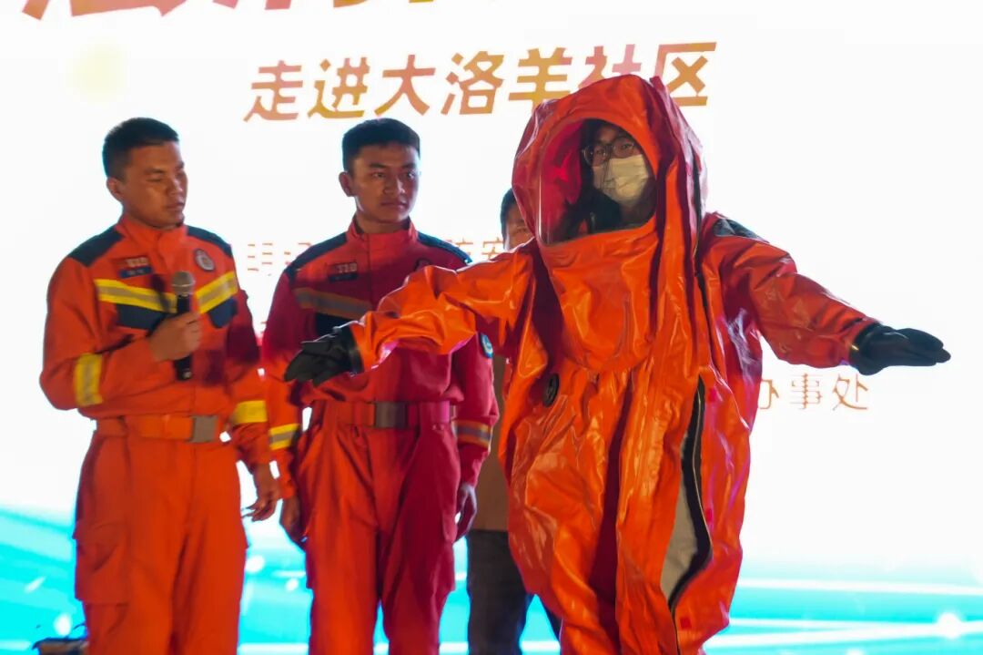 部分消防知识宣传活动现场还设置消防装备体验环节,邀请现场观众在消防员指导下试穿专业的消防服装,感受“消防战袍”的重量与意义。