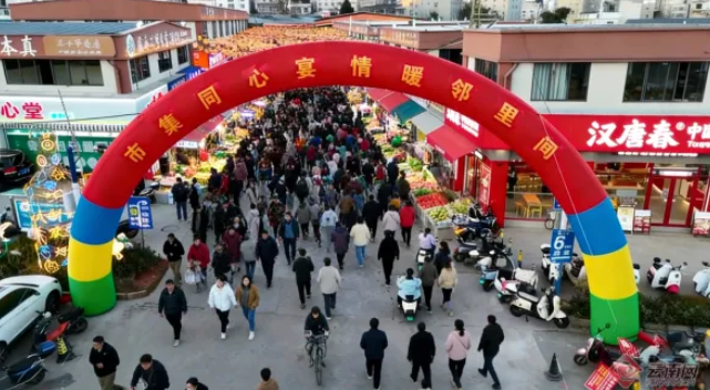 岁末冬深,年味渐浓。日前,昆明经开区(自贸试验区昆明片区)洛羊街道大新册社区集贸市场“市集同心宴·情暖邻里间”长街宴活动启幕,120余张餐桌沿街铺展,宛如一条承载着情谊与期盼的长龙。