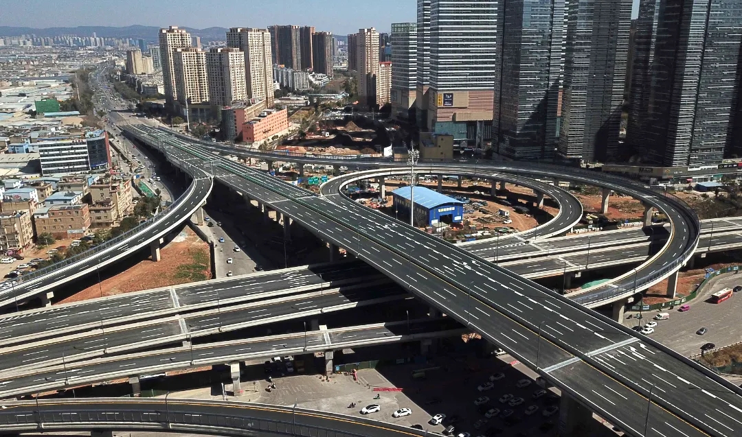 广昌立交桥位于昌宏路与广福路交会处,是连接昆明东部、南部片区多个重要方向的关键交通枢纽。本次通车主要开放桥梁部分,实现昌宏路与广福路主线方向全程无信号灯快速化通行,并高效衔接广福路(主城方向)与昌宏路的交通转换,显著提升了该节点的通行能力和通达效率。