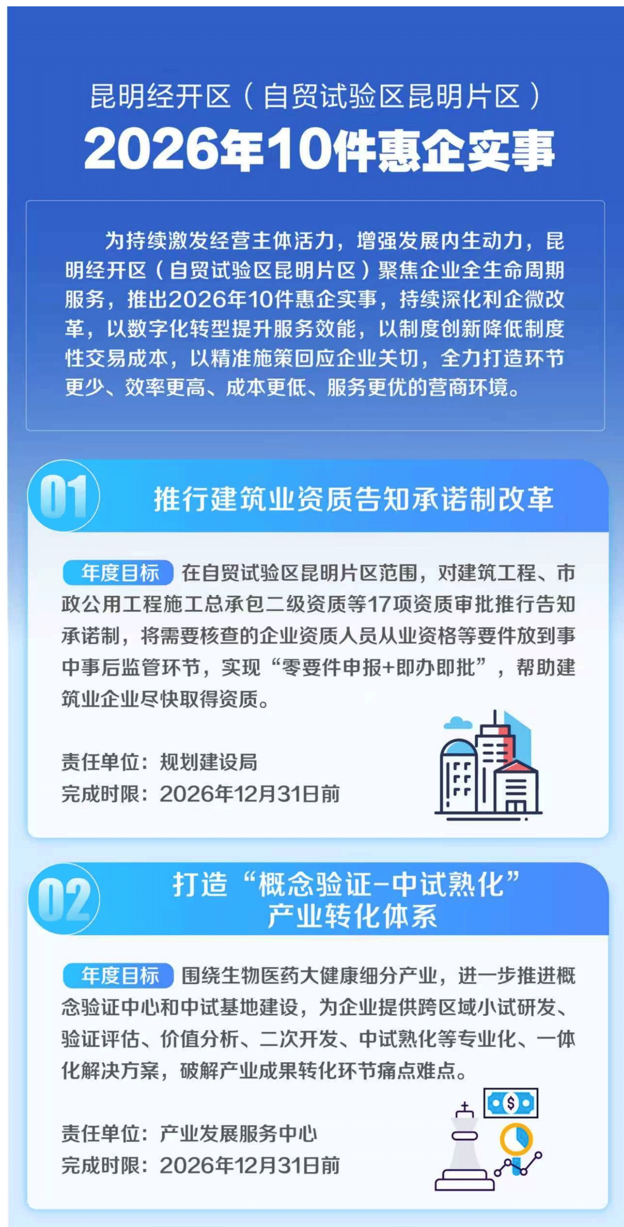 一图读懂《昆明经开区(自贸试验区昆明片区)2026年惠企10件实事》